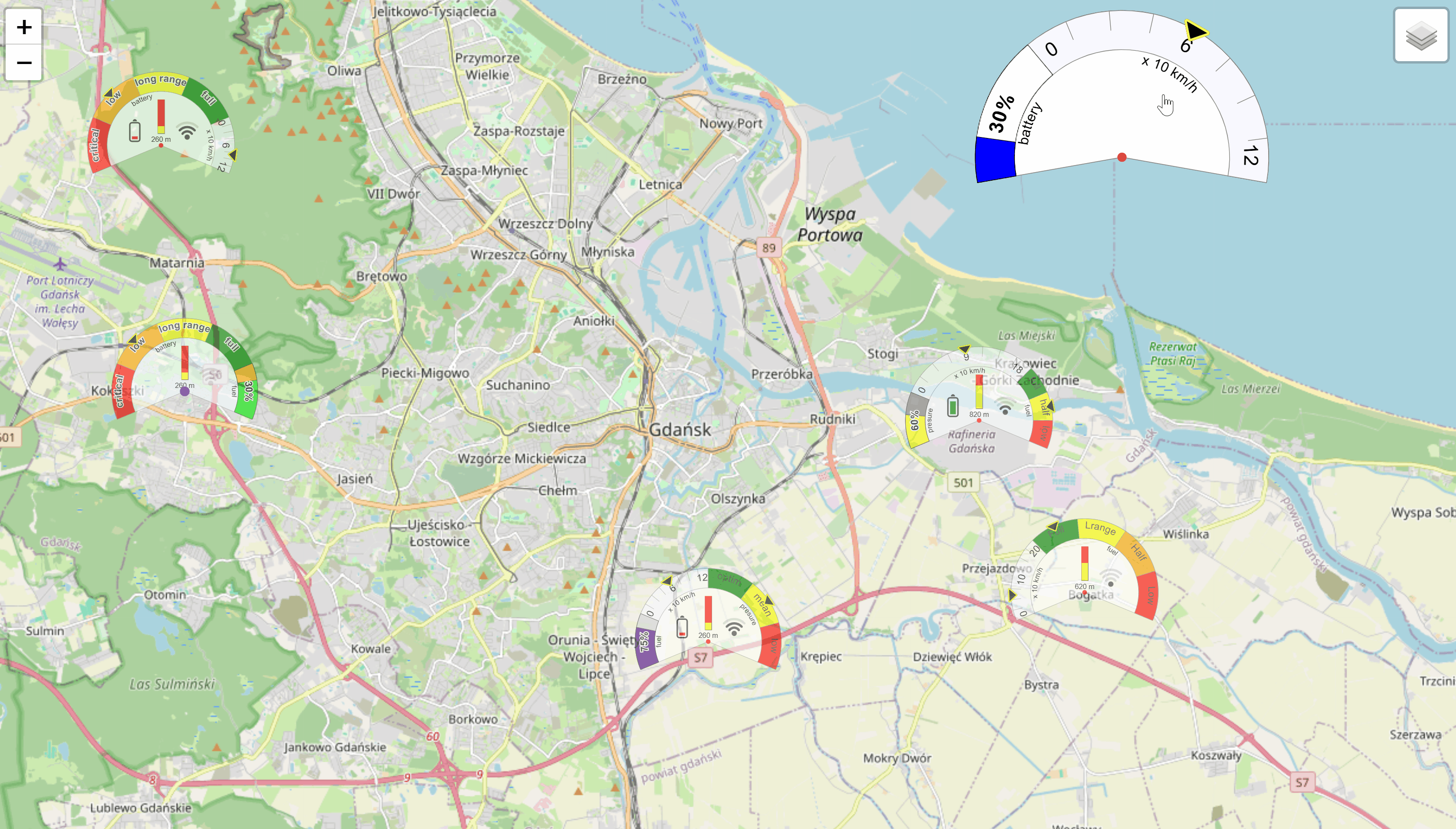 You can quickly add a map to the blazor page without script links and without stylesheet references or without other JavaScript specific settings. LeafletForBlazor provide you RealTimeMap control for real time data displaying, custom appearance on the map. The appearance of shapes displayed on the map includes customized symbology, the use of icons, displaying data in tooltips, displaying charts in tooltips. **Direct display** of charts in map (Pie, Donut Gauge) at the zoom level in certain intervals, etc. **Sigma Drone Chart** - you can create customizable charts for drone monitoring LeafletForBlazor can also display data stored in GeoJSON files following the RFC 7946 standard. **Nuget versions 1.x.x are deprecated.**