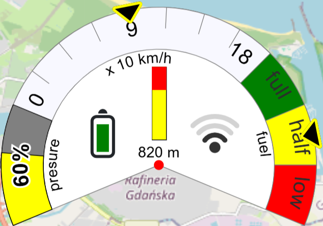You can create charts specific to drone monitoring. This type of chart is a combination of Gauge and vehicle-specific indicators.